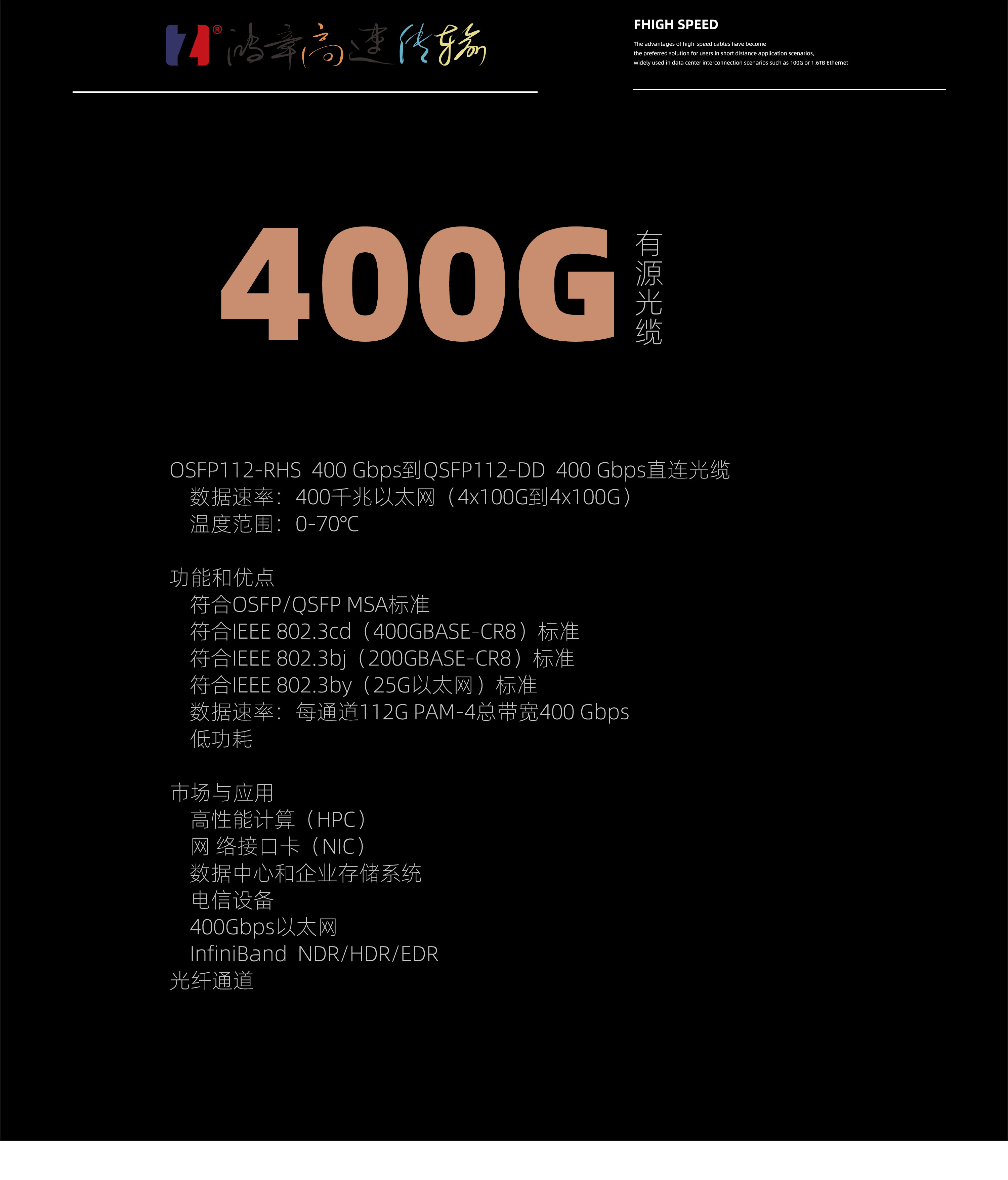 鸿章400G-AOC高速传输OSFP112-RHS QSFP112-DD多模直连光缆超算IB